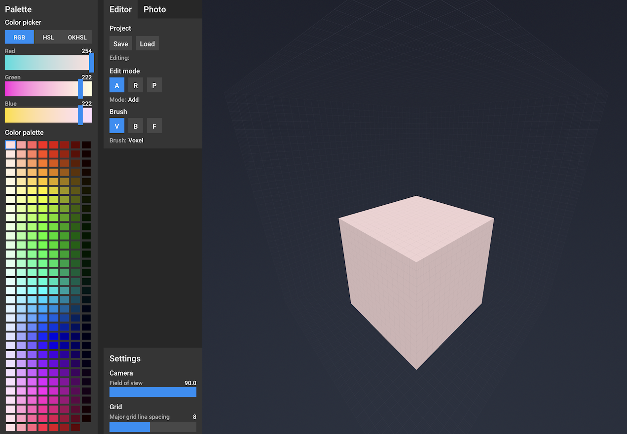 Polycube is a voxel editor for easy 3D modeling and previewing. Create models on a simple grid and export them to MagicaVoxel format for use in other tools and games.